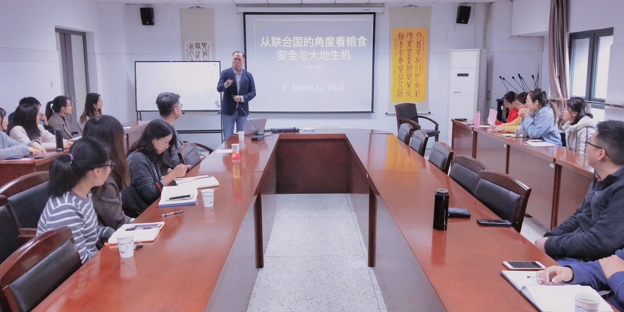11月21日,应公司yd222云顶线路检测邀请,深圳大学教授、博士生导师罗扬铭教授在仙林校区工科楼211会议室做了题为“从联合国的角度看粮食安全与大地生机”的讲座。讲座由yd222云顶线路检测陆颖健教授主持,公司教师、研究生聆听了此次讲座。