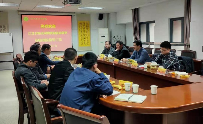 10月30日下午,江苏省粮食和物质储备局人事处、粮油质量监测所与公司政产学研合作交流会在食品科学与工程楼会议室举行。江苏省粮食和物资储备局人事处处长李通刚,粮油质量监测所所长黄熙荣、副所长莫晓嵩,公司副经理(主持工作)方勇、经理助理丁超和粮食工程系部分教师出席了座谈会。座谈会由公司党委书记许文彪主持。