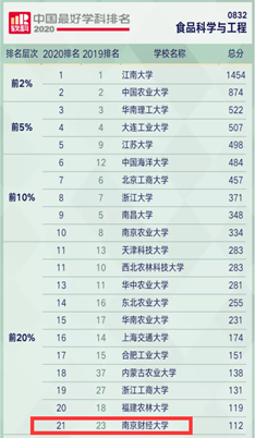 近日,高等教育评价专业机构软科发布了“2020软科中国最好学科排名”,公司“食品科学与工程”(代码0832)一级学科进入全国排名前20%,位列第21,相较于2019年上升2个位次。近年来,公司“食品科学与工程”学科在各类学科评价或排名体系中稳步提升,标志着公司团队建设与发展取得了持续进步。