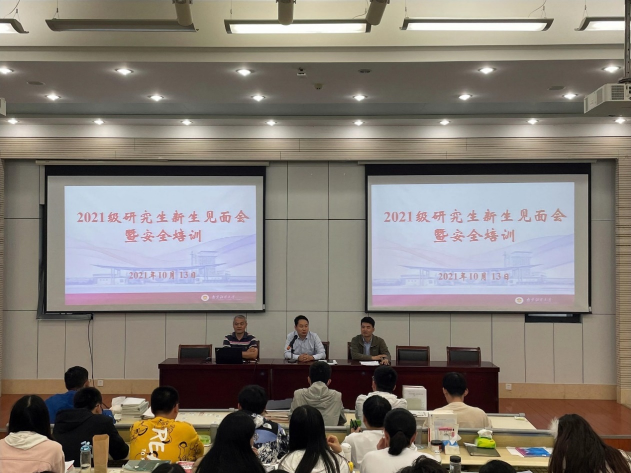 10月13日下午,公司在工科楼阶梯教室举行2021级研究生新生见面会暨安全培训。经理方勇教授、副经理唐培安教授、导师代表沈新春教授、实验员夏季老师、安全员仝瑶老师和校外专家丁新龙副总经理参加会议。