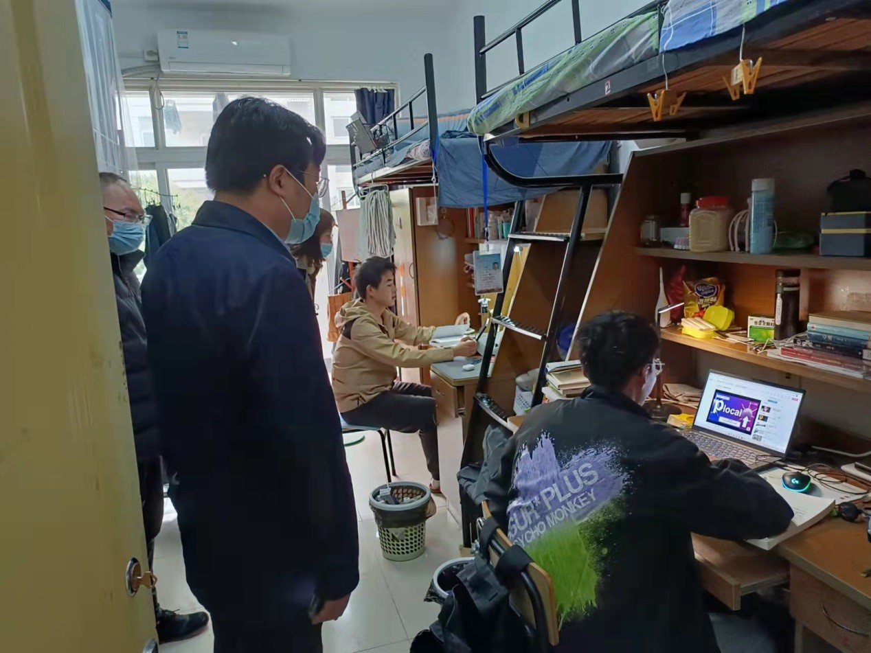 为确保疫情防控工作落到实处,及时了解同学们的思想动态及学习生活情况,让返校员工线上上课安全有序的进行,3月28日上午,公司党委副书记周进进和全体辅导员前往员工宿舍,了解同学们的学习和生活状态。