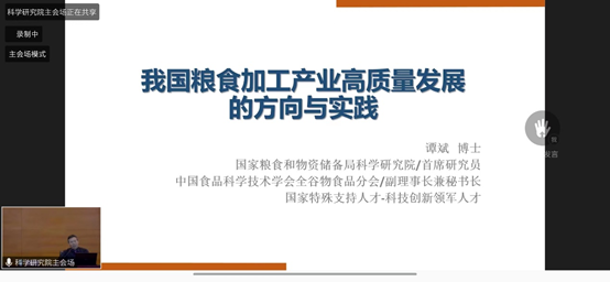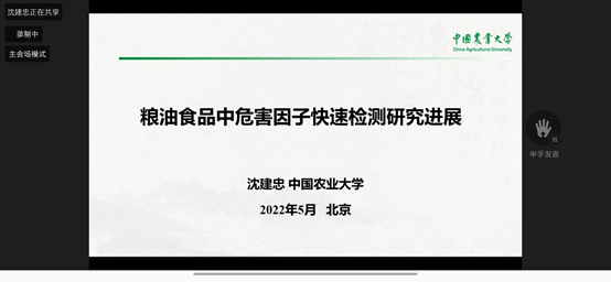2022年5月23日下午三点至五点,公司部分老师及研究生参加了2022年全国粮食和物资储备科技活动周的“粮科大讲堂”,中国工程院院士沈建忠教授、中国食品科学技术学会常务理事谭斌研究院分别对“粮油中危害因子快速检测研究进展”、“我国粮食加工产业高质量发展的方向与实践”进行了分享汇报,国家粮食和物资储备局督查专员李成毅主持本次会议。