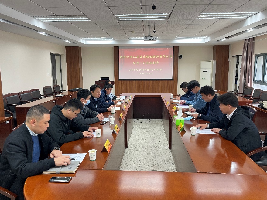 3月10日,江苏苏北粮油股份有限公司董事长赵亚,研发主任许诺成,贸易部经理屈帅及办公室主任陈也一行来公司调研交流。现代粮食流通与安全协同创新中心办公室主任唐培安,副经理沈飞,李彭副教授,丁俭博士以及朱珍珠博士参加座谈会。座谈会由方勇经理主持。