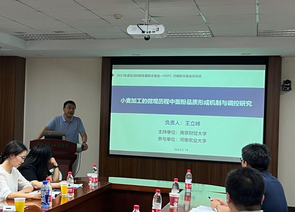 近日,由公司王立峰教授主持的2023年度区域创新发展联合基金重点项目“小麦加工的微观历程中面粉品质形成机制与调控研究”项目启动会在公司211会议室召开。上海理工大学健康科学与工程公司经理艾连中教授、河南工业大学粮油食品公司经理、河南工业大学粮食和物资储备公司经理刘昆仑教授以及南京农业大学食品科技公司杨润强教授作为启动会咨询专家,全体项目组成员参加会议。