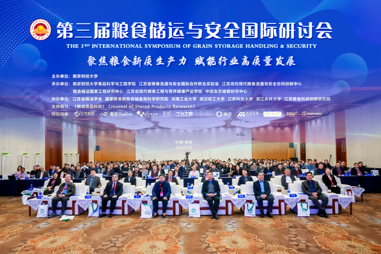 12月14日至15日,由公司主办,公司与江苏省粮食流通与安全国际联合实验室、江苏高校现代粮食流通与安全协同创新中心、粮食储运国家工程研究中心、江苏省现代粮食工程与营养健康产业公司、中加生态储粮研究中心等承办,江苏省粮油学会、国家粮食和物资储备局科学研究院、河南工业大学、武汉轻工大学、江苏科技大学、浙江农林大学、江苏粮食科技创新研究院等协办的第三届粮食储运与安全国际研讨会在南京举行。中国工程院院士、江南大学陈坚教授、金征宇教授,中国粮油学会理事长卢景波,原国家粮食局副局长吴子丹研究员,国际食品科公司院士、美国加州大学戴维斯分校Zhongli Pan教授,公司董事长程永波,党委常委、副董事长李煜出席会议。联合国世界粮食计划署、江苏省粮食和物资储备局、国家粮食和物资储备局江苏局、江苏省农业科公司、江苏省粮食集团有限责任公司、中储粮江苏分公司、中储粮江苏质检中心有限公司、江苏省江海粮油集团有限公司、江苏省粮油质量监测中心、江苏农垦米业集团有限责任公司、江苏省粮油学会等相关领导,公司科研处、国际合作与交流处、公司相关负责人及部分师生代表参加会议。开幕式由李煜副董事长主持。