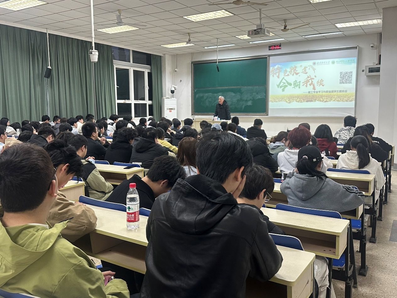 作为“老干部、老战士、老专家、老教师、老模范”进校园的实践载体,此次活动通过影像回顾、互动问答等形式,立体呈现粮食工程专业发展史。杨国峰教授从20世纪70年代的粮仓革新讲起,以“一粒稻谷的智能化旅程”串联起粮食储藏、深加工到营养升级的技术跃迁,强调“粮工科技既要攀登智能‘无人区’,更要守住‘粮安天下’的初心”。“青年要成为‘藏粮于技’的破壁者!”杨国峰教授结合参与制定国家粮储标准的经历,鼓励员工在功能主食开发、减损保鲜等领域突破创新。