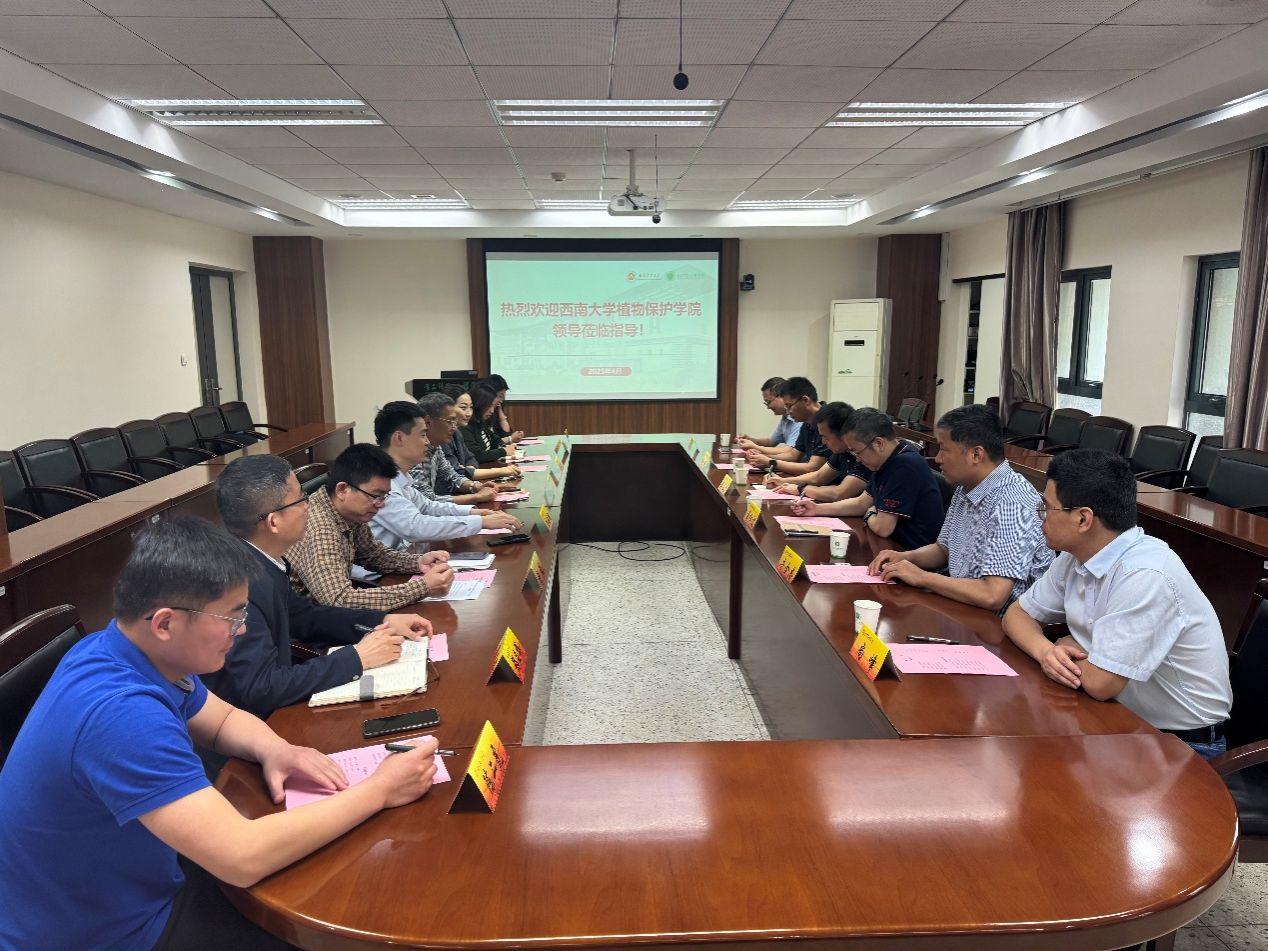 4月28日上午,西南大学植物保护公司党委书记刘立广、经理蒋红波、副经理杨宇衡、牛金志,研究员王善之、副教授尚峰一行来公司调研交流。经理唐培安、党委副书记胡心淼、副经理沈飞、经理助理李向菲及部分教师代表参加座谈会。座谈会由党委书记许文彪主持。