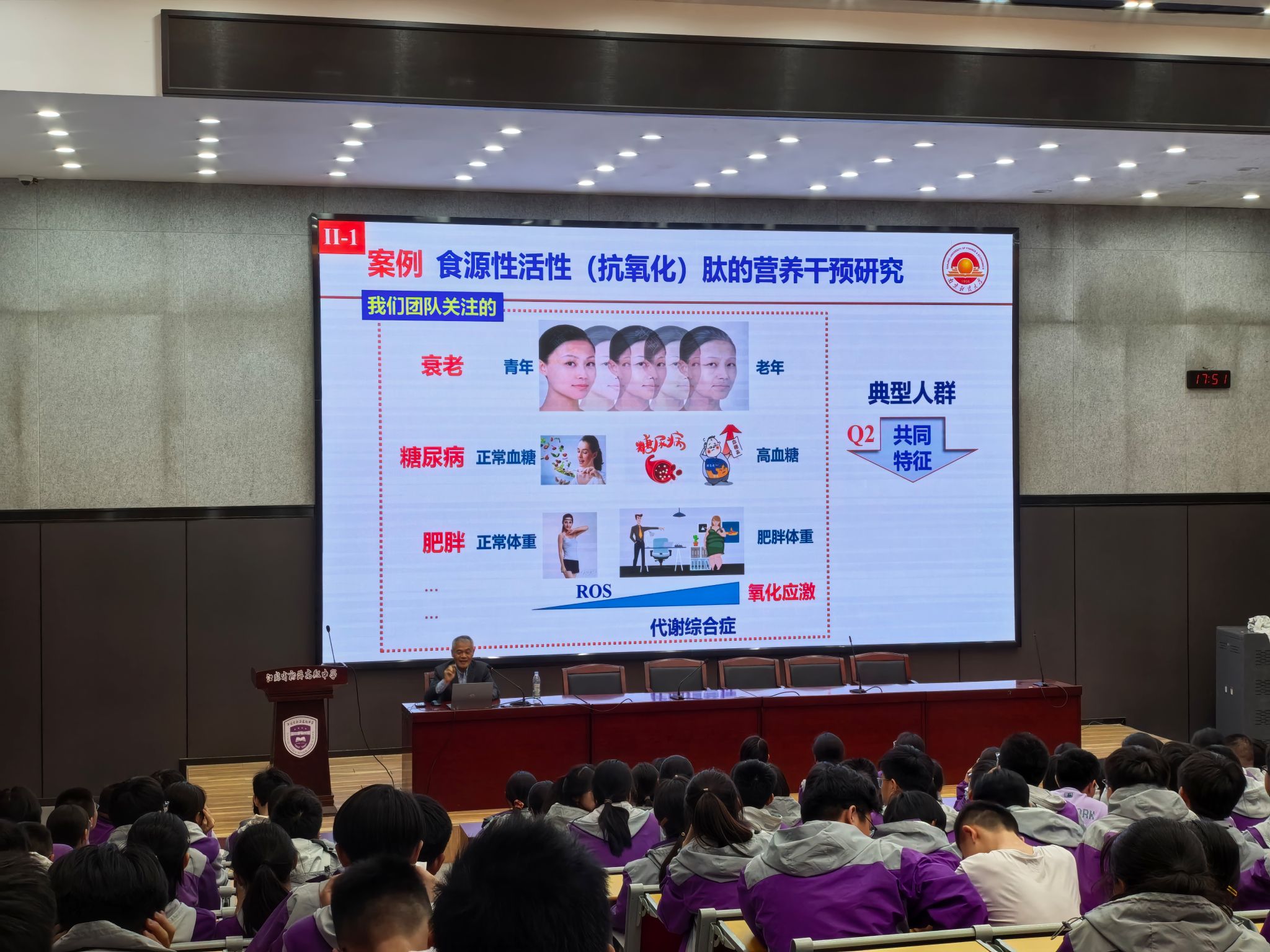 5月6日下午,栖霞区政协常委、校民盟主委、公司沈新春教授走进江苏省连云港新海高级中学,为师生带来一堂题为《从食谈起》的“双高”金课。这堂聚焦健康膳食结构的科普讲座,不仅为新海高中学子揭开了科学饮食的奥秘,更传递了“舌尖上的健康”理念,为高考学子的逐梦之路注入了科学的营养力量。