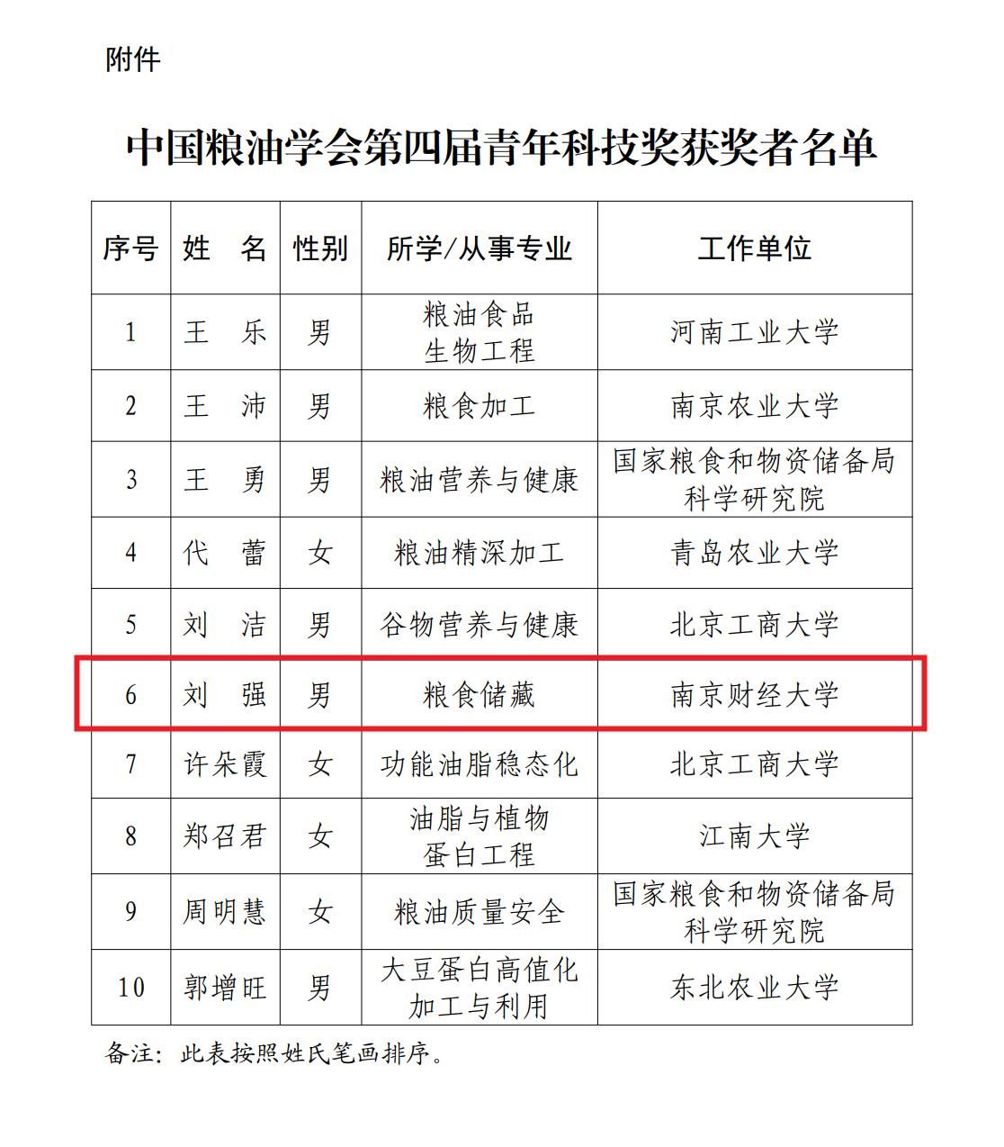 5月26日,中国粮油学会第四届青年科技奖获奖者名单公布。经单位推荐、形式审查、专家初评、综合评审、评审结果公示、奖励委员会审定等程序,公司刘强副教授成功入选。