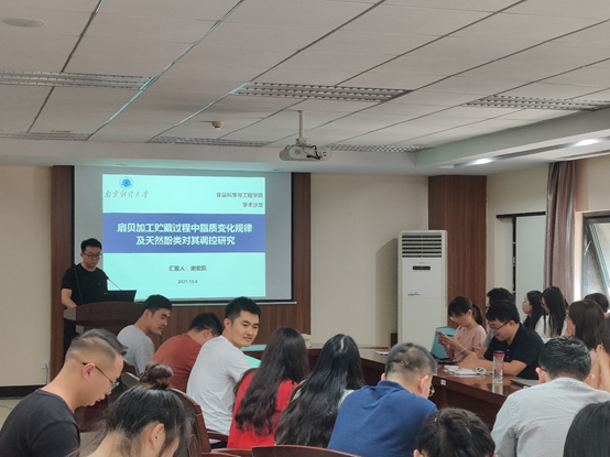 谢宏凯博士介绍了扇贝水分含量高,微生物易繁殖,捕捞后易腐败变质,为了延长扇贝的货架期,除了冷冻、冷藏等低温保藏外,可以将扇贝加工成干制、罐藏等产品,然而干制这种加工方式会导致脂质氧化,降低扇贝营养价值,因此,天然酚类对扇贝干制过程中脂质变化的影响规律及机理就显得尤为重要。