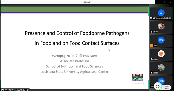 11月2日上午,应公司邀请,美国路易斯安那州立大学许文清副教授为公司师生作了题为《Presence and Control of Foodborne Pathogens in Food and on Food Contact Surfaces》的线上学术报告。yd222云顶线路检测部分师生代表参加了本次报告会,报告会由yd222云顶线路检测陆颖健教授主持召开。