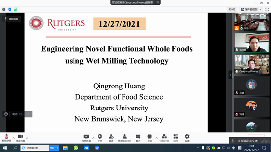 2021年12月27日,应公司邀请,美国罗格斯大学黄庆荣教授为师生作了题为Engineering whole grain emulsion gels using wet milling technology的线上学术报告,公司部分师生代表参加了本次报告会,报告会由科研处副处长杨文建教授主持。