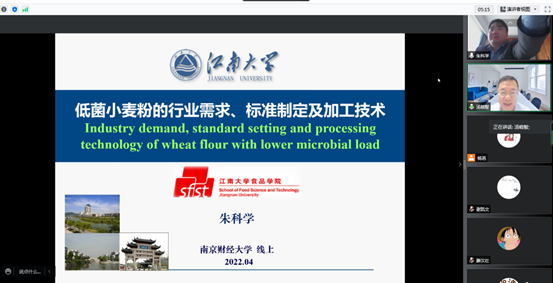 2022年4月26日,应公司邀请,江南大学朱科学教授作了题为“低菌小麦粉的行业需求、标准制定及加工技术”的线上学术报告,公司部分教师和研究生参与了本次报告会,报告会由公司副经理汤晓智教授主持。