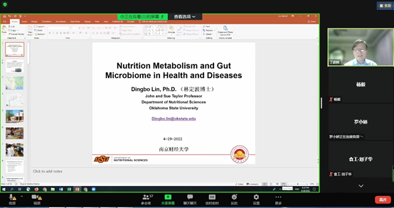 2022年4月29日上午,应公司邀请,俄克拉荷马州立大学的林定波副教授作了题为“Carotenoid metabolism and gut microbiome in health and diseases”的线上学术报告,公司部分教师和研究生参加了此次报告会,报告会由公司沈新春教授主持。