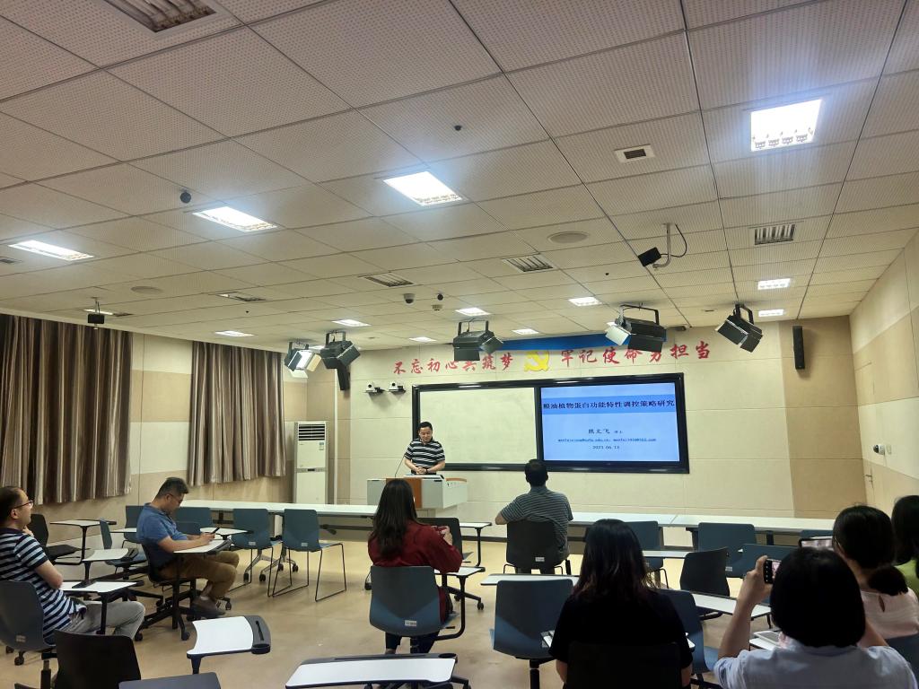 6月13日下午,公司在食工楼214室举办2023年第六期“学术沙龙”活动。刘建辉老师和熊文飞老师分别作了题为“茶多酚调节小肠绒毛长度和脂肪酸代谢的研究”和“粮油植物蛋白功能特性调控策略研究”的学术报告。公司经理助理陆颖健教授和部分师生参加了本次活动。学术沙龙由汤晓智教授主持。