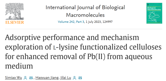 2023年5月25日,yd222云顶线路检测吴思邈、陆继来(通讯作者)在国际TOP期刊International journal of biological macromolecules(Q1,IF: 8.025)发表题为“Adsorptive performance and mechanism exploration of l-lysine functionalized celluloses for enhanced removal of Pb(II) from aqueous medium”的研究性论文。