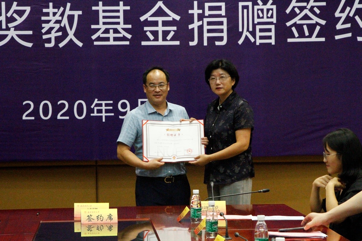 随后,蒋望董事长和裴银伟副处长、方勇副经理(主持工作)共同签署捐赠协议,邱伟芬副董事长代表公司向蒋望董事长颁发了捐赠证书。