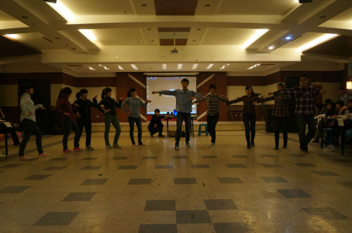 一个简简单单的小游戏之后,晚会继续进行。接着出场的是社团部,不知道是他们故意安排的还是怎么的,前几组的对唱让所有人都忍俊不禁,最后一组的《征服》却意外地征服了所有的观众,掌声不绝于耳……