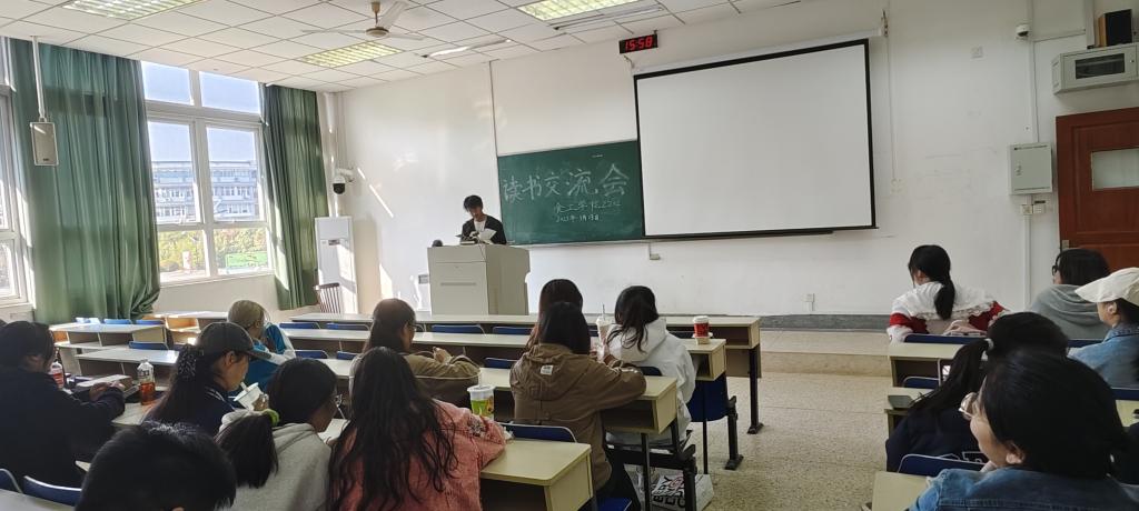 活动伊始,由同学们自发有序上台介绍自己所想推荐的书籍,既有《三体》那样引人遐想的科幻巨作,也有东野圭吾的悬疑推理小说,更不乏村上春树动人心弦的《挪威的森林》⋯⋯大家分享着自己的热爱,希望好的作品被更多的人看见。其次,有相同偏好的同学可以自行进行讨论,加深对彼此的了解,同时也可以找到兴趣相投的好友,教室内一派祥和,欢声笑语。