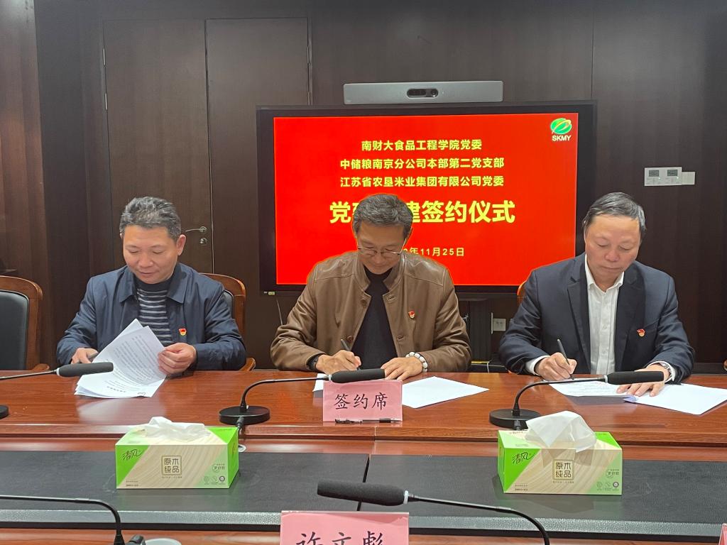 会上,宗兆勤书记介绍了江苏省农垦米业集团有限公司的基本情况。他表示,此次党建共建基地的签订将为三方党建工作开拓新的思路,形成合力,希望三方不断创新党组织工作内容和共建载体,开创共建共赢发展新局面。刘华处长介绍了中储粮南京分公司党建工作情况,他表示要以此次党建共建基地签约为契机,建立常态化党建共建活动,一步加强交流合作,为保障全省粮食安全、粮食减损提供坚强的组织保证。