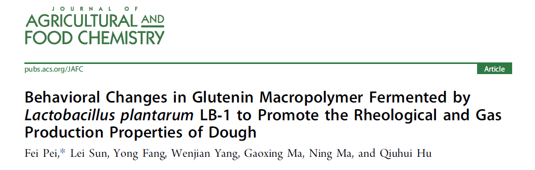 近年来,为了提升面制品的品质并且延长其保质期,化学添加剂被广泛应用于面制品的工业化生产。然而,过度的使用化学添加剂会引起面制品营养的流失,甚至对人体造成致癌、致畸的作用。已有研究表明,乳酸菌作为一种纯天然的、绿色的益生菌,有望替代传统的化学改良剂,在改善面制品的风味特性、质构特性的同时,有效延长面制品的保质期。麦谷蛋白大聚体(GMP)作为小麦蛋白的重要组分,在面团的形成过程中起着至关重要的作用。因此,探究乳酸菌作用下麦谷蛋白大聚体的行为变化对面团品质的影响具有重大的意义。