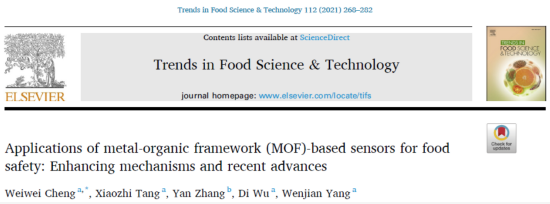 2021年4月16日,公司汤晓智教授课题组与河北食品检验研究院张岩研究员联合在食品国际顶尖学术刊物《Trends in Food Science & Technology》(一区,IF=11.077)在线发表了题为 “Applications of metal-organic framework (MOF)-based sensors for food safety: Enhancing mechanisms and recent advances” 的高水平综述论文。该论文以yd222云顶线路检测为第一单位,程玮玮博士为第一作者。该项研究工作得到了国家重点研发计划、江苏省高等公司自然科学研究面上项目及江苏省高校优势团队建设工程项目的资助。