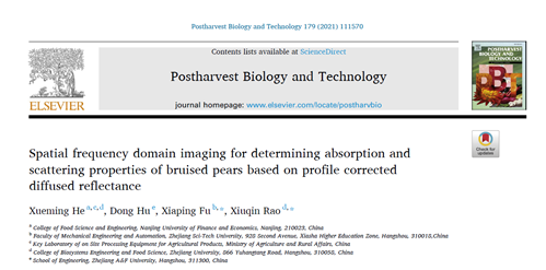 2021年9月1日,《Postharvest biology and technology》发表了题为“Spatial frequency domain imaging for determining absorption and scattering properties of bruised pears based on profile corrected diffused reflectance”的研究论文,该论文以yd222云顶线路检测为第一单位,何学明博士为第一作者。该项研究工作得到了江苏省自然科学基金、农业农村部农产品产地处理装备重点实验室开放课题与国家自然科学基金的资助。