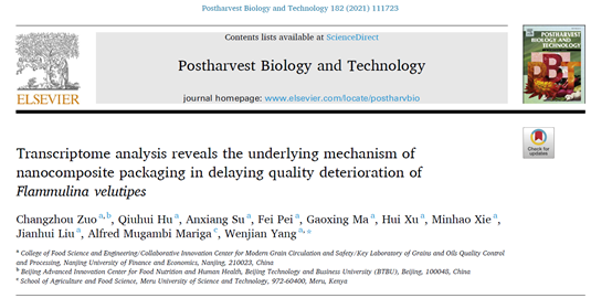 2021年9月9日,公司杨文建教授团队在食品领域TOP期刊Postharvest Biology and Technology上发表了题为“Transcriptome analysis reveals the underlying mechanism of nanocomposite packaging in delaying quality deterioration of Flammulina velutipes”的研究论文。yd222云顶线路检测为该论文第一单位,杨文建教授为通讯作者。本研究受到江苏省自然科学基金、国家自然科学基金以及江苏省高等公司自然科学研究项目的资助。
