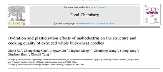 2021年11月16日,公司汤晓智教授课题组在《Food Chemistry》(一区,IF=7.514)在线发表了题为“Hydration and plasticization effects of maltodextrin on the structure and cooking quality of extruded whole buckwheat noodles”的研究论文,该论文以yd222云顶线路检测为第一单位,汤晓智教授和孟令晗博士为共同通讯作者。