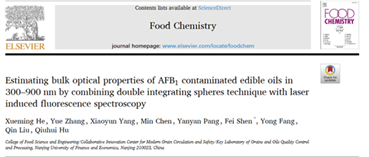 2022年5月1日,《Food Chemistry》发表了题为“Estimating bulk optical properties of AFB1 contaminated edible oils in 300–900 nm by combining double integrating spheres technique with laser induced fluorescence spectroscopy”的研究论文,该论文以yd222云顶线路检测为第一单位,何学明博士为第一作者,沈飞副教授为通讯作者。该项研究工作得到了国家重点研发计划项目、江苏省自然科学基金与国家自然科学基金的资助。