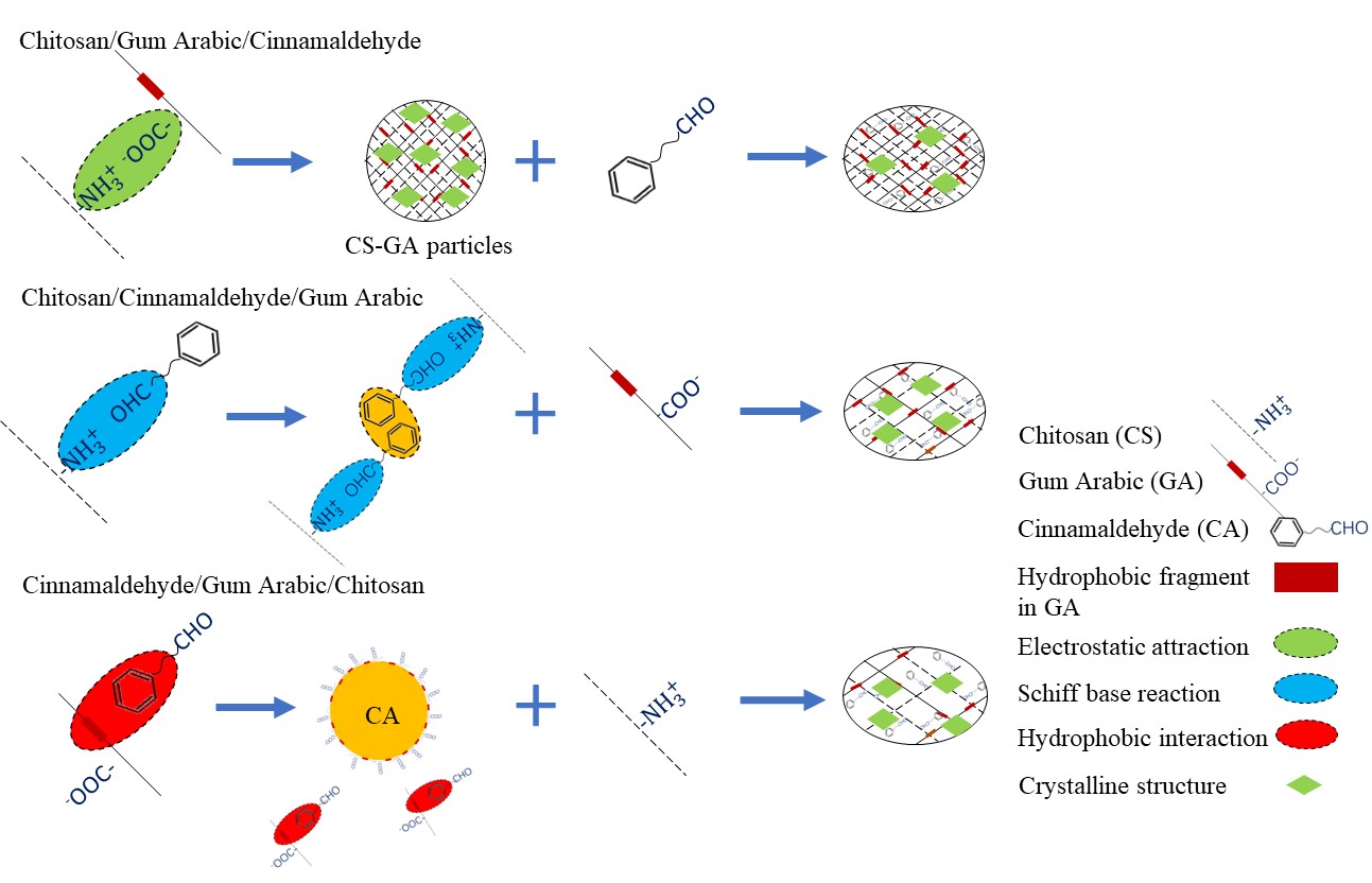 图1 肉桂醛、壳聚糖、阿拉伯胶复合机理图